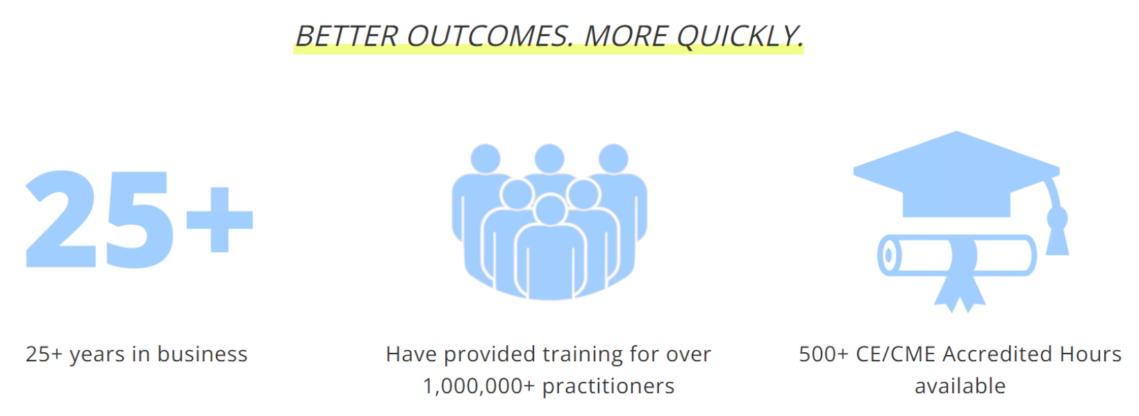 We proudly provide continuing education for practitioners who are dedicated to being the best in their craft. Our goal is to develop programs that connect you with the top experts and the latest strategies in the field, to help you achieve better outcomes, more quickly with each of your clients.